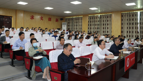 5月8日下午,我校在办公楼四层文林大讲堂举办党史专题报告会。党史学习教育陕西省委、西安市委宣讲团成员、陕西师范大学马克思主义学院博士生导师王晓荣教授作题为《中国共产党的百年辉煌和宝贵经验》的专题报告。校领导、全体副科级以上干部、党支部书记及马克思主义学院专兼职教师参加报告会。临潼校区教师以视频会议形式聆听报告。报告会由校党委书记刘予东主持。