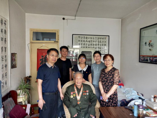 现年93岁的离休老干部庞征弘同志参加过抗美援朝战争,于2020年加入中国共产党,成为一名中国共产党员。人文学院的党员代表与他一起回顾在党的光辉照耀下,学院走过的奋斗历程和取得的发展成就,并祝福他健康长寿。