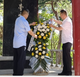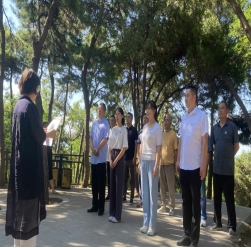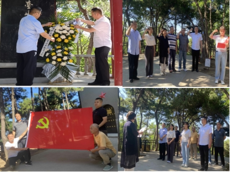 后勤党支部一行来到爷台山,瞻仰革命纪念碑,全体党员向革命烈士肃立、默哀。