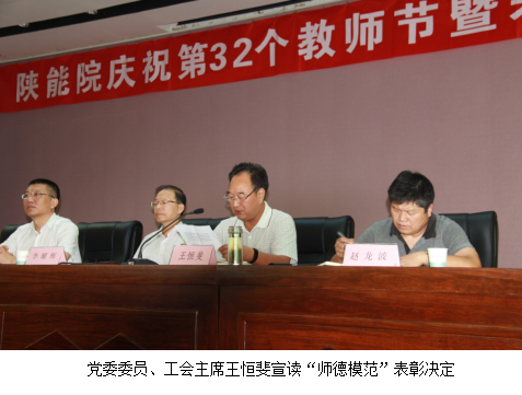 在学院9月7日召开的庆祝第32个教师节暨表彰大会上,有三位获得学院“师德模范”称号的教师受到表彰。今年是学院第一次开展“师德模范”评选活动,这三位教师也是首批荣获学院“师德模范”称号的教师。此项活动的开展,将对学院的师德建设起到引导和推动作用。