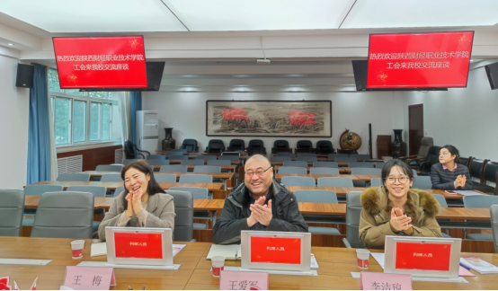 11月18日,陕西财经职业技术学院工会主席王爱军一行三人莅临我校进行交流座谈。交流座谈会在我校办公楼第二会议室举行。工会副主席李粒主持会议。