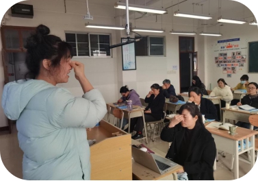 程思结合教职工所需,聚焦工间常见问题,针对性讲解久坐伏案、用嗓过度、用眼疲劳、颈椎腰椎养护等常见问题的中医调理方法。现场示范简单易学的肩颈放松、护眼保健操,讲解动作要领及操作技巧,手把手指导教职工将中医保健融入备课、授课、办公等场景,有效缓解职业劳损、舒缓工作压力。