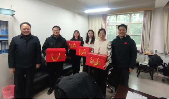 党委副书记校长朱忠军(左一)、工会主席(右一)到人事处“送温暖”慰问