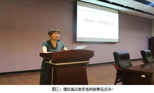 根据我校第三届“就业创业文化节”的安排,为了帮助广大学生增强就业意识,提高我院19届毕业生个人简历制作水平和学生面试的应变能力,做好就业准备,促进他们顺利就业,经济管理学院在班级初赛的基础上于2018年5月24日晚19:30在实训楼报告厅举办了简历制作及模拟面试决赛,15名选手参加决赛。我院党总支书记李鲜玲老师、院长马百皓老师作为模拟面试官,担任评委的分别是我院学工班主任姜老师、辅导员田老师以及16级各班班主任老师。全院16、17级300多名学生参加观摩。大赛由辅导员蒋老师主持。