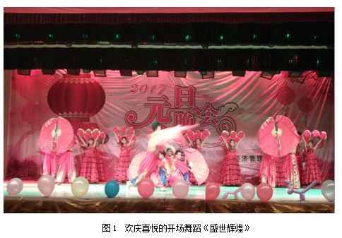 经过前期的认真策划和排练,经管系呈现给师生的是一场主题明显、内容健康、形式多样、亦教亦乐的文化大餐。晚会在欢庆喜悦的舞蹈《盛世辉煌》中拉开序幕,在蒋文、赵飞老师与两名学生合唱的《最初的梦想》中闭幕。