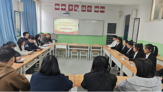 2025年3月17日,信息商务学院学工党支部在教学楼302教室隆重召开预备党员转正大会。本次会议旨在对张鑫、李娜等9名预备党员的转正事宜进行审议和表决。会议由支部书记杜康主持,支部全体党员、预备党员及相关培养联系人出席会议。