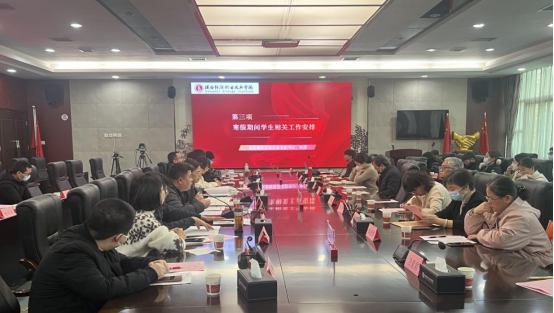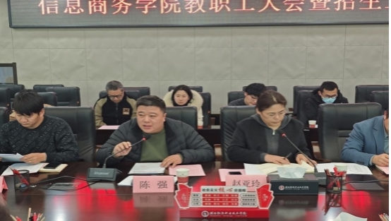 2025年1月14日下午,信息商务学院在办公楼第三会议室召开了教职工大会暨招生工作部署会。此次会议旨在全面分析2025年招生形势,发布招生工作方案,部署招生工作,并就寒假期间学生工作安排以及学院整体工作进行动员,同时强调学院安全稳定工作的重要性。会议由学院党总支书记赵亚玲主持,学院党总支副书记、院长于涛、党总支副书记陈强、综合办、学工办全体成员及各教研室主任、专业带头人、全体教职工参加了此次会议。