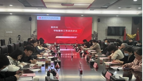 紧接着,于涛就学院整体工作进行动员。他做了题为《唱响“五首歌”,共筑“信商院”》的动员讲话,引用五首歌:《三大纪律八项注意》、《团结就是力量》、《同一首歌》、《学习雷锋好榜样》、《敢问路在何方》强调“坚决服从、团结一心,热衷学院,树立服务、自力更生”的工作基本原则,树立万事“共窗、共闯、共创”的“团结之心、思想之基、凝聚之力、奋斗之劲”,全院教职工奋力开拓,一起闯出一片属于信商学院的“新天地、新梦想、新未来”。