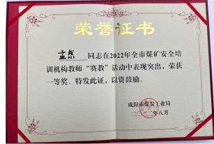 1110日,咸阳市煤炭工业局举办的咸阳市煤炭培训机构教师赛教活动在陕西彬长文家坡矿业公司举办,来自咸阳市6家煤矿培训机构的12名教师参加比赛。经过激烈的角逐,我校孟然老师获得一等奖(第一名)、尤阳阳老师获得三等奖(第五名)。