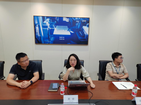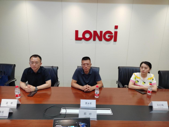 贾永军一行首先参观了隆基智慧能源展馆,随后,隆基绿能科技股份有限公司校企合作高级经理郑婷、高级工程师与贾永军等人进行座谈交流。