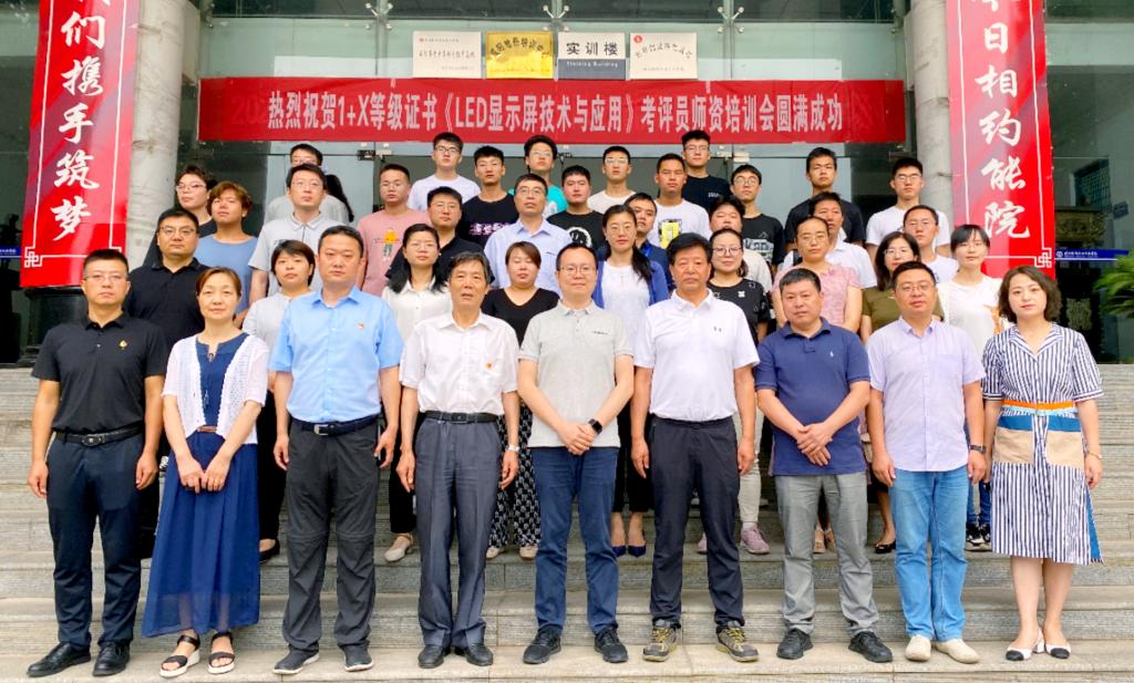 为深入贯彻国务院《国家职业教育改革发展实施方案》文件精神,全面落实《关于组织开展1+X证书制度试点院校教师培训的通知》的要求,2021年7月2日上午8点半,“1+X”技能等级证书《LED显示与应用》考评员师资培训班于在学校实训楼LED显示技术实验室顺利开班,来自陕西省8所中高职院校18名教师参加培训。