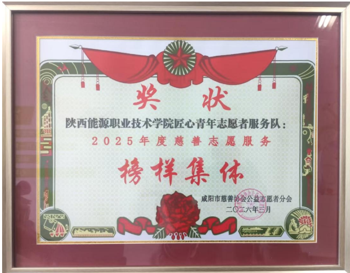 328日,2026年度慈善志愿服务工作部署大会在咸阳隆重召开。大会全面总结年度志愿服务工作,并对表现突出的先进集体与个人进行表彰。新型能源学院匠心青年志愿服务队受邀参会,凭借扎实的志愿服务成果,成功荣获2025年度慈善志愿服务榜样集体称号,多名学子同步斩获个人荣誉,充分展现学院青年志愿者的良好风貌与责任担当。