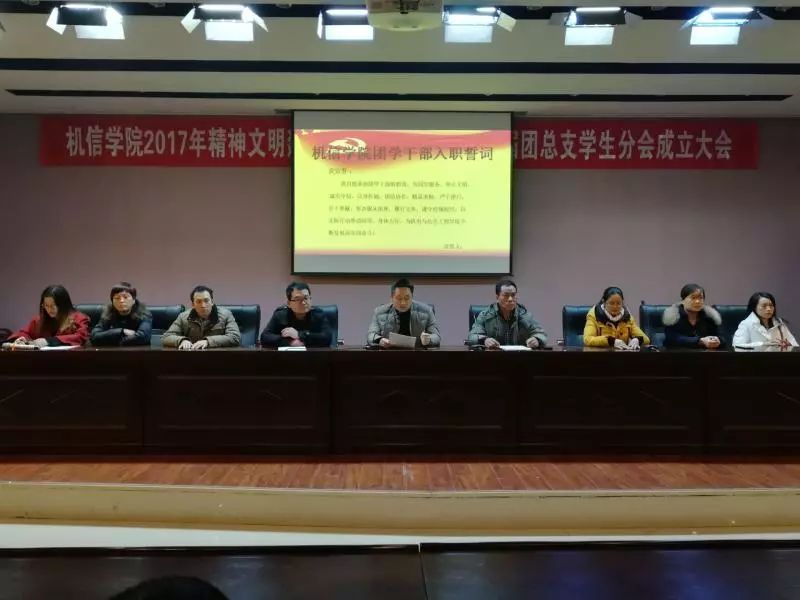 为了表彰先进,树立典型,扎实推进我院精神文明建设工作的进一步开展,12月28日中午在实训楼六楼报告厅召开了“机信学院2017年精神文明表彰大会暨第一届团总支学生分会成立大会”。出席此次会议的老师有:机信学院党总支书记刘浩,院长李志,综合办主任张继军,辅导员郭润侠老师,何利老师,陈先章老师,尹艳玲老师,景安琪老师、石红梅老师,学工办主任冯帅主持本次会议,除此外参加大会的还有机信学院团学干部及各班学生代表共计300余人。