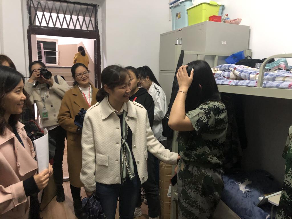智信学院党总支书记曹俊侠与辅导员、班主任一起走访女生宿舍