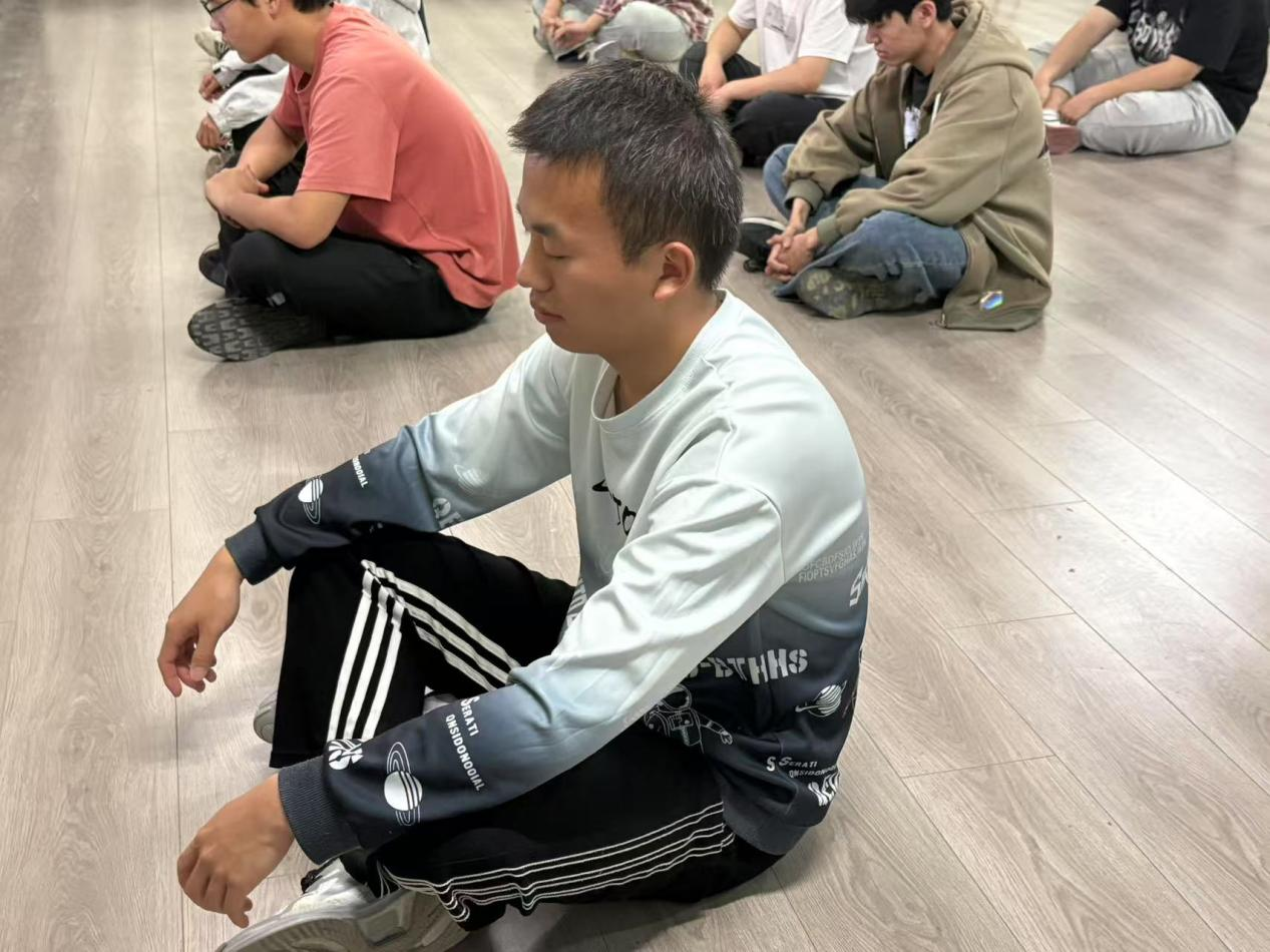 正念呼吸练习环节,成为同学们放松身心的“秘密武器”。大家跟随老师的引导语,缓缓闭上双眼,专注于每一次呼吸的起伏,感受气息在鼻腔中流动,在胸腔中舒展。在这宁静的氛围中,身体的紧张与疲惫渐渐消散,心灵也随之得到了片刻的宁静与舒缓。