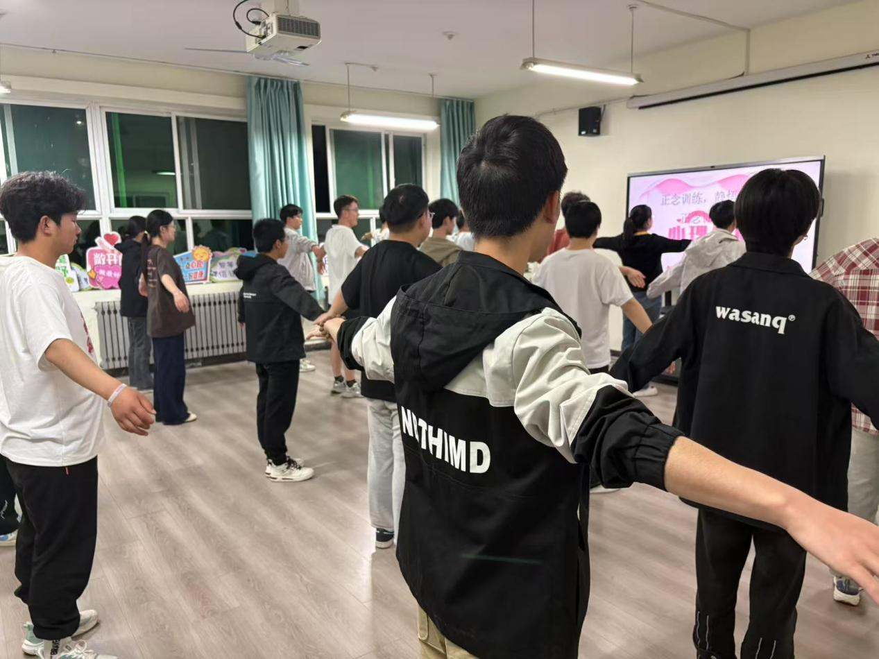 活动伊始,心理辅导员王倩老师以一场活力四射的拍拍操运动拉开了序幕。同学们跟随欢快的节奏,尽情舒展身体。这一环节不仅成功激活了同学们的身体能量,更迅速活跃了现场气氛,让大家迅速融入活动氛围,对接下来的正念训练充满了期待与热情。