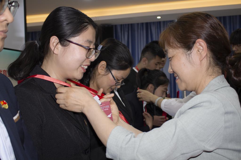 启动仪式上,党总支宣传委员景安琪宣读《智信学院“智青春”党史学习教育宣讲团活动方案》;曹俊侠书记、李粒副书记为宣讲团成员颁发聘书、佩戴胸牌;宣讲团成员代表何诗婷同学做表态发言。