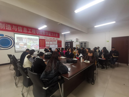 在党课上,黄俊梅通过参赛过程、参赛心得、赛后感谢、比赛差距四个方面集合日常教学工作,做了全程分享。黄俊梅首先将比赛过程中学生参赛过程、老师指导大赛过程进行全程分享,全体党员虽未能亲身在现场比赛但通过黄俊梅的分享感受到了比赛的激烈场面;同时,黄俊梅将本次比赛指导过程和学习过程做了全程分享,做为教师在日常教学中要多多向其他高校学习、指导学生时做好系统训练,指出在大赛中对学生的心理辅导尤其重要。在学生比赛过程中、辅导员、班主任、同学们的支持为学生比赛鼓足了勇气,帮助学生更好的完成了比赛。最后,黄俊梅总结比赛经验,在大赛中可以看到我们与其他省份高校有一定差距,希望我们摆正心态,加强交流学习,注重培养学生能力,为接下来的比赛打好基础。