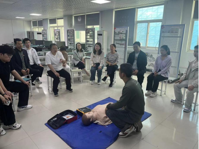 第二主题突出急救培训,邀请医疗设备专业优秀学生进行专业指导。学生们详细讲解了心肺复苏术的操作要点和AED设备的使用规范。党总支书记冯帅指出,“学生的专业讲解和示范,让我们深刻的理解急救设备的设计逻辑,记忆更深刻。”现场学习氛围浓厚,党员们认真记录、积极演练。