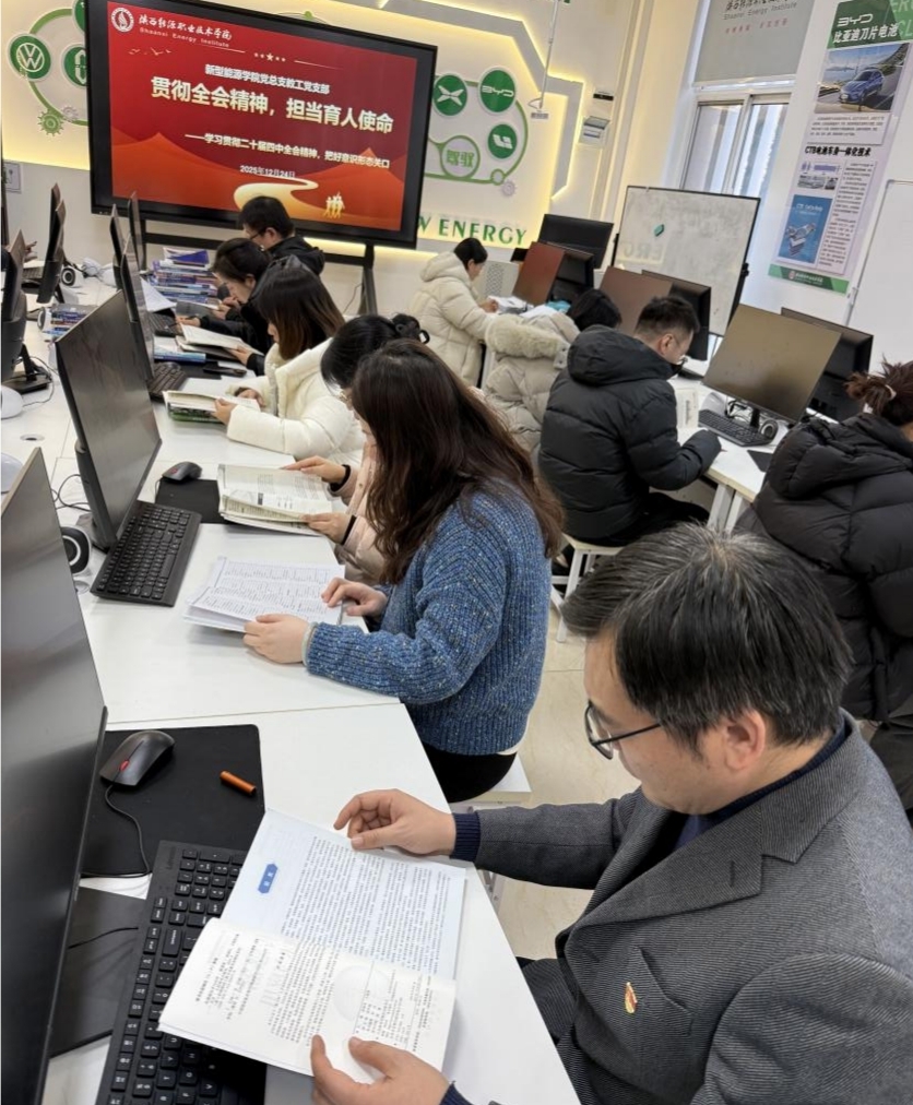 为贯彻落实党的二十届四中全会精神,切实筑牢意识形态工作防线,1224日,新型能源学院党总支教工党支部在第三实训楼207开展“学习贯彻全会精神,把好意识形态关口”主题党日活动。活动由党支部书记谢文霞主持,全体教师党员参加。