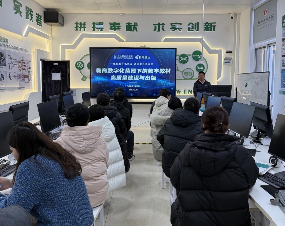 为积极响应国家教育数字化战略部署,系统提升教材建设质量与育人实效,12月24日,新型能源学院党总支教工党支部在第三实训楼207教室成功开展“金教材与数字教材建设”专题讲座。本次活动特邀人民邮电出版社李童泉担任主讲嘉宾,教工党支部全体教师党员积极参与。