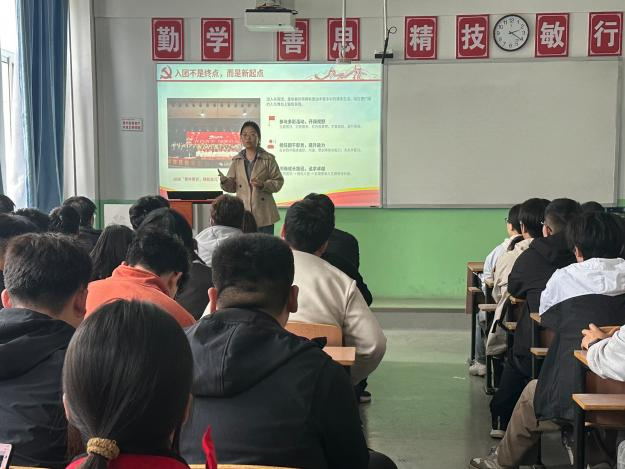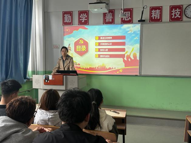 负责团务工作的老师赵梦蝶通过讲述共青团的发展历程、性质使命与责任担当,阐释新时代青年入团的重要意义,鼓励大家以团员标准严格律己,在思想上、行动上主动向团组织靠拢。从五四运动的爱国火种,到共青团的初心使命;从入团的基本条件与规范流程,到新时代青年榜样的奋进故事,鼓励同学们以高标准严格要求自己,积极向团组织靠拢。