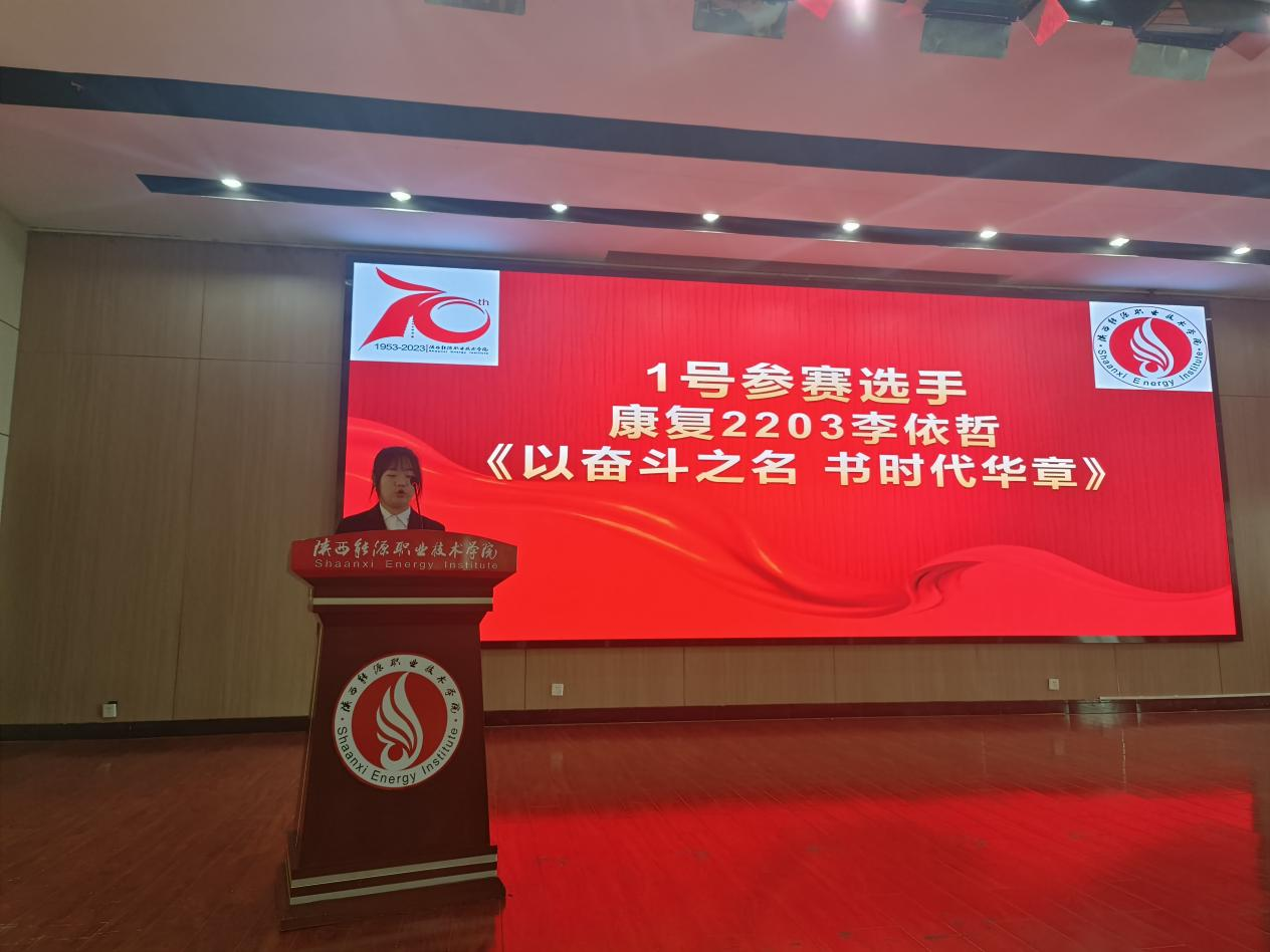 本次活动经过预赛、复赛共推选出11名参赛选手进行决赛,演讲活动围绕主题回顾讲述自己的所思、所感、所悟、所获及中华人民共和国百年复兴以来走过的光辉历程,回顾了陕能源七十年来栉风沐雨,奋力前行的岁月,给在场听众带来一次精神洗礼,展现了康养学子奋进新征程、建功新时代的心声。