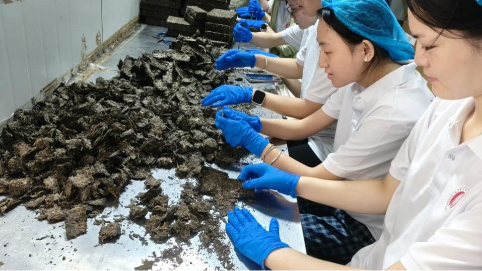 在企业焦主任及制茶师的带领下,实践团系统学习茯茶“原料拼配—渥堆发酵—发花工艺—蒸汽软化—压制定型—恒温干燥—质检分级—仓储陈化”八大核心工序,深刻理解了“一片茶叶背后的生物密码”,体悟传统技艺中蕴含的科学智慧。