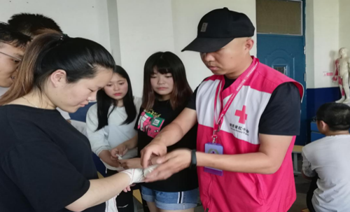 5月14-15日,陕西省红十字应急救护员培训班在我校1号楼508教室举行,共有52名师生参加培训。陕西省红十字会今年在我校开设2期培训班,临潼、咸阳校区各举办一期公益性应急救护员培训。4月临潼校区培训工作已顺利结束,至此,本年度红十字应急救护培训工作圆满完成。 本期培训班为期2天,由陕西省红十字会的救护培训资深师资史晔灵、韩晶老师担任本次培训主讲工作,培训内容包括“红十字基础知识”、“救护概论及心肺复苏”“创伤救护”“常见急症处理”等,通过理论+实践+操作考核的授课方式,考核合格者发放陕西省红十字会“现场救护资格证”。老师风趣、专业的授课方式,深受学员喜爱,课堂气氛热烈,互动频繁。 通过两天的培训和练习,最终有47人顺利通过考核,有效掌握了心肺复苏、局部包扎等日常应急救护知识和技能,提高了我校师生的自我保护和救助他人的能力。