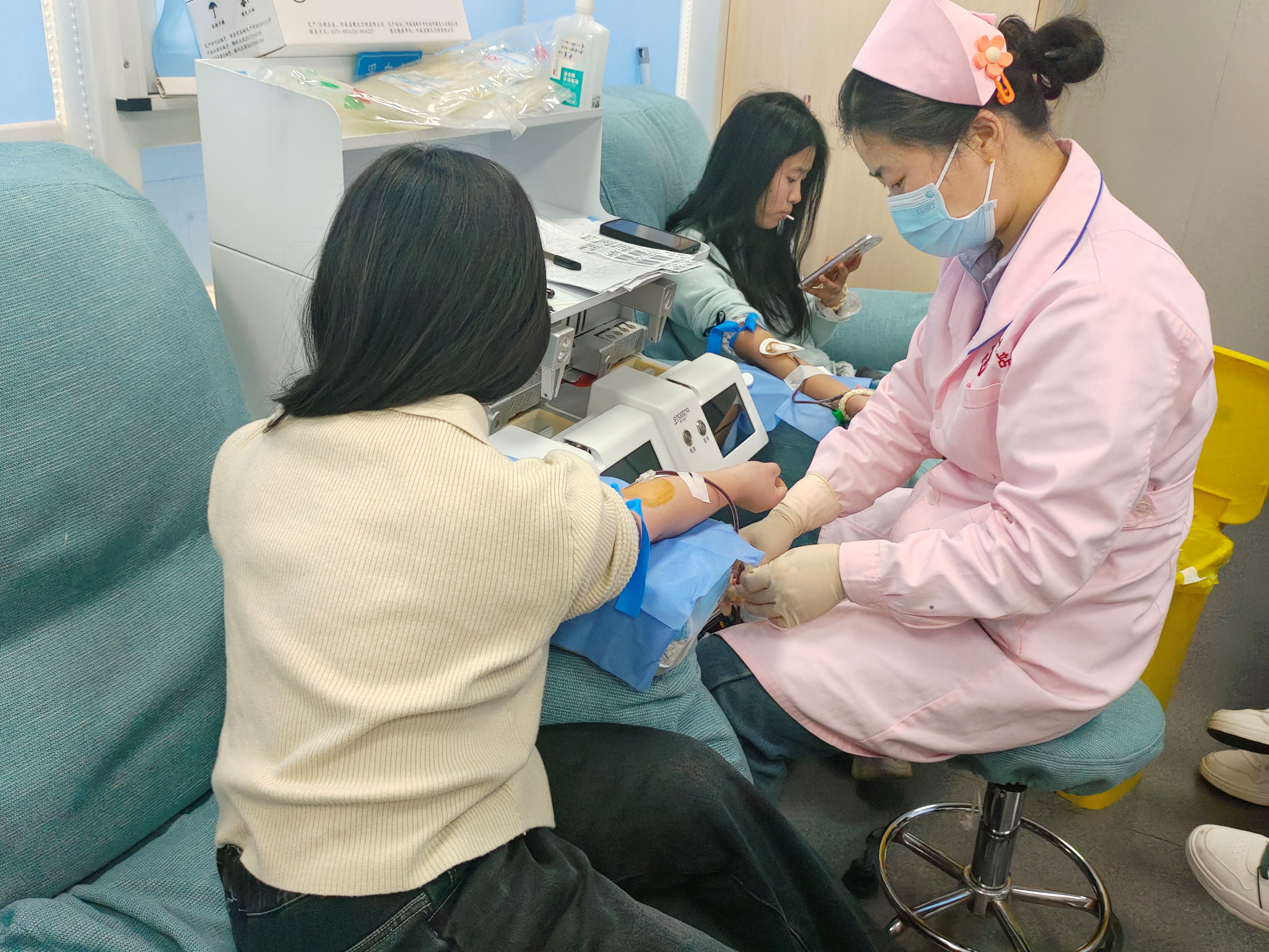 建测学院积极响应团市委号召,由学院团委书记带领15名献血志愿者和6名志愿服务学生,赴咸阳市丽彩万达广场参与“筑梦建测 热血同行”青年志愿者无偿献血活动。志愿者们早早到达现场,积极配合血站工作人员,协助完成献血登记、体检、采血等工作。他们用热情和耐心为每一位献血者提供服务,详细讲解献血注意事项,缓解献血者的紧张情绪。志愿者们还通过发放宣传资料,向市民普及无偿献血的意义和相关知识,号召更多人加入献血队伍,传递爱心与温暖。志愿者们用实际行动践行雷锋精神传递爱心,展现了新时代青年的社会责任感和奉献精神。