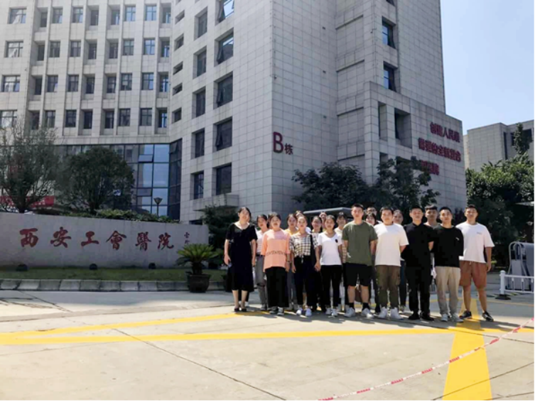 2019年7月10日上午,袁晓媛老师和宇文清凤老师送20名康复专业学生到西安市工会医院开始为期8个月的临床实习学习。