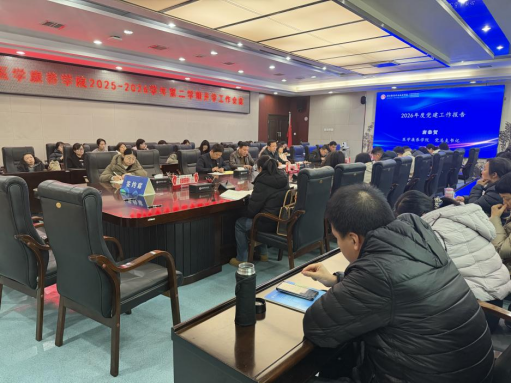 为深入贯彻学校党委“十五五”规划战略部署,扎实推进2026年“新质夯基年”各项工作2月28日,医学康养学院在春季开学职工大会上,由党总支书记唐恭贺作的2026年度党建工作报告,明确以高质量党建引领学院“十五五”事业高质量发展的目标路径,全体教职工参会。