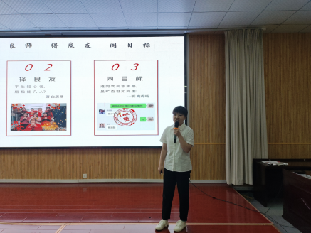 煤炭与化工产业学院的訾龙同学以《人生,新起点!》为题,从做奉献青年者、坚定信仰者、开拓创新者、启航奋斗者四个方面讲述了自己在校期间的成长轨迹,鼓励同学们要明确发展方向并不断坚实自身基础、不断提升适应社会的本领、不断付出辛勤汗水,瞄准社会发展和群众需求,脚踏实地、埋头苦干,用奋斗为青春涂抹靓丽的底色。