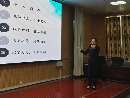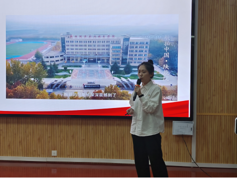 护理学院的齐怡佳同学《以砥砺前行燃奋斗青春,榜样领航做时代新人》为题,向大家分享了在校期间参加校园活动、社会实践、志愿服务的点滴故事,表明坚持自强是走向成功的重要秘籍,号召广大青年朋友要坚定理想信念、成为有担当、有本领、有作为的新时代青年。