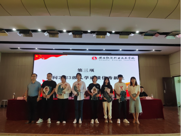 张多宣读2023级高考入学成绩优秀学生名单,唐恭贺、任春晓、张多、赖菁华为各专业在高考中取得文理科成绩排名前三的新生们颁发新生入学奖,以激励2023级同学们脚踏实地、努力学习、踔厉奋发、敢于拼搏,在大学生活中不断蜕变,取得更加优异的成绩。