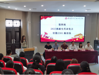 2023级新生代表赵红玉、张力,杨嘉雯、陈佳钰发言