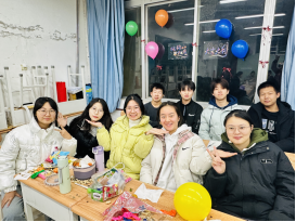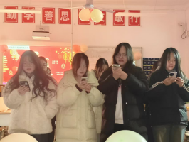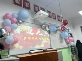 晚会开始前,每个班级都积极布置教室。精美的投影幕布诉说着对节日的祝福,简单的气球和彩带在同学们的手中变化出了温馨的天地,缤纷的小彩灯营造出节日欢乐的氛围,学生们的课桌围成了梦幻的舞台,蛋糕、鲜花、零食、瓜子、水果和饮料等装点着每个学生今晚的快乐。