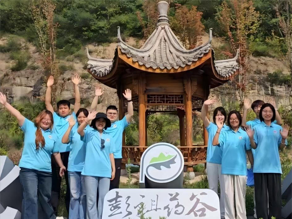 实践队以“历史与康养交融”为切入点,开启文化探寻之旅。首站走进宜君县彭祖药谷,队员们深入千亩种植基地观察连翘、黄芩等道地药材生长状态,在中医药产业链服务大厅了解从种植到销售的全链条运营模式,并在彭祖书院亲身体验八段锦、艾灸等传统养生项目,直观感受中医药文化与现代康养产业的深度联结。