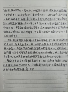 通过本次的团课笔记情况的检查,能看出同学们在观看了《为了和平》纪录片后所激发出的强烈的爱国情怀和对抗美援朝志愿军战士的深深敬佩之情。本次团课,主题鲜明,内容丰富,各班纪律良好,让同学们更好的了解到当时中国的国情和抗美援朝志愿军战士艰苦奋战的场面,使同学们受益良多。