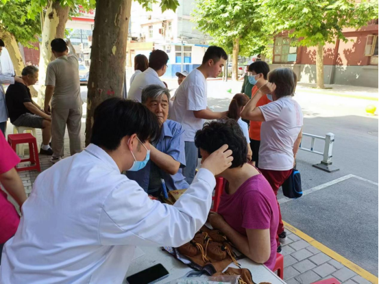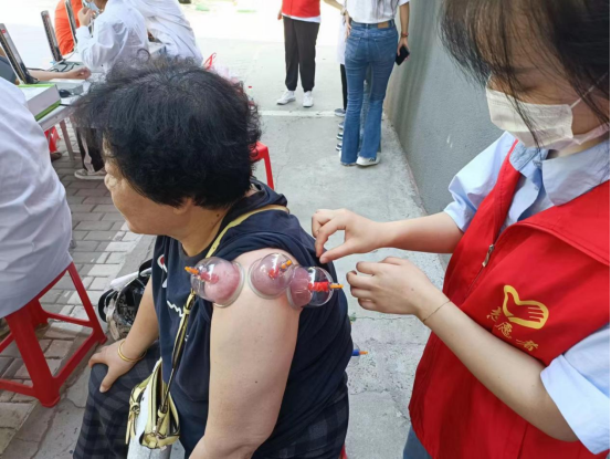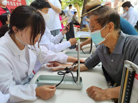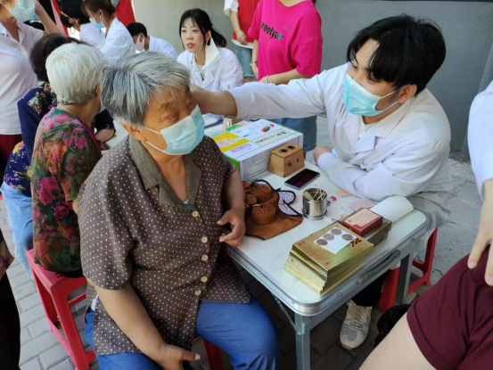 活动现场,医学院志愿者同学与前来咨询的老人进行面对面的交流,耐心解答问题,并且提供测血压、推拿按摩、艾灸、健康咨询等服务。志愿者们还为前来体检的老人发放健康宣传资料,给予健康饮食等方面的建议。