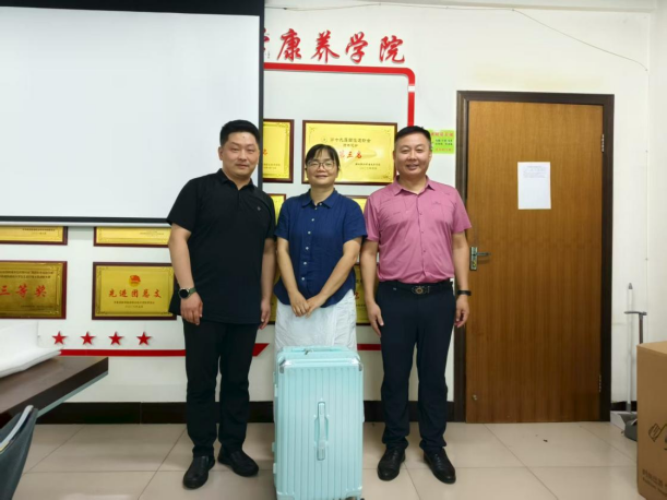金秋九月,丹桂飘香,在这充满收获与希望的季节里,医学康养学院成功开展了金秋助学慰问活动。此次活动旨在为学院教职工子女在升学之际送上关怀与祝福,激励他们努力学习,为家庭争光,为社会添彩。7月27日,学院党总支书记唐恭贺及分会主席冯毅对我院贾彤老师及其子罗皓晨表示热烈祝贺,并送上精心准备的慰问礼品行李箱箱,将学院的温暖与关怀传递到教职工家庭中。