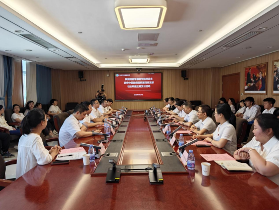 在座谈交流环节,双方围绕党建引领、人才培养、医疗实践、社会服务等方面的党支部联建工作计划进行交流探讨。在“医护康养人才培养协同创新中心建设研讨”环节,医学康养学院院长任春晓向与会同志们详细介绍了共建协同创新中心的合作背景及建设目标,最终形成“科研突破—人才输出—技术转化—健康普惠”的全链条闭环,为践行健康中国战略提供示范性解决方案,双方共建“协同创新中心”擘画新路径。