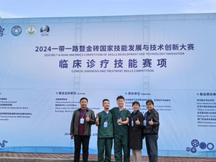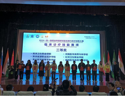11月15日-17日,2024一带一路暨金砖国家技能发展与技术创新大赛临床诊疗技能赛项在山东省菏泽医学专科学校举行。来自全国二十个省(自治区、直辖市和新疆生产建设兵团)的45所院校共计90名参赛选手参赛。经过精心筹备与刻苦训练,由现代康养学院临床教研室贾彤、康小宁指导的临床2201班李丹、2201班杨平辉参赛队,经过不懈努力与顽强拼搏,凭借扎实的专业技能和出色的团队协作能力,最终以优异成绩荣获三等奖。