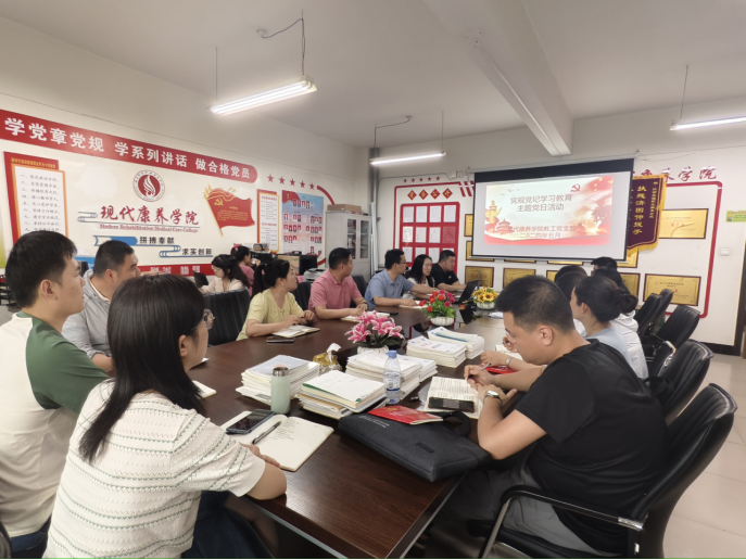 为深入贯彻落实党的二十大精神、二十届中央纪委二次全会精神,大力推进校园廉洁文化建设,引导干部师生进一步夯实清正廉洁思想根基、厚植廉洁奉公文化基础、培养廉洁自律道德操守,不断增强廉洁治校、廉洁从教、廉洁育人、廉洁修身意识,纵深推进学院全面从严治党和清廉校园建设,现代康养学院教工党支部于5月8日下午组织开展党规党纪学习教育主题党日活动,会议由教工党支部书记赖菁华主持。