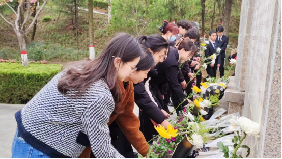 活动在庄严的国歌声中拉开帷幕,师生齐唱国歌,在烈士纪念碑前肃立默哀,悼念烈士不朽英魂,学生代表为烈士敬献花篮,表达对革命先烈的深切哀悼和崇高敬意。在学院团委书记师怡子的带领下,全体在场学生重温入团誓词,面对团旗庄严宣誓,“勤奋学习,积极工作,吃苦在前,享受在后,为共产主义事业而奋斗!”坚定了师生不忘初心、践行青春誓言的理想信念。学工办主任郑倩强调,作为当代大学生,要积极传承革命先烈伟大的爱国主义精神和敢于担当的责任意识,用丰富的文化知识武装头脑,勤奋学习,努力成才,成为对国家、民族、社会有作为、有贡献的人。