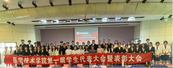 为深入学习贯彻党的二十大精神,团结引领广大青年学子奋进新征程、建功新时代,6月8日中午,医学技术学院第一届学生代表大会暨表彰大会在实训楼6楼报告厅隆重举行,医学技术学院党总支副书记韩晓磊、副院长李蕊、综合办主任王瑞娟、教学办主任赵星、学工办主任郑倩、全体辅导员及学生代表共计180人出席本次会议,会议由医学技术学院团委书记师怡子主持。
