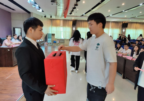 艾明冉代表新一届学生会干部表态发言,他表示学生会将不断加强自身建设,牢记“全心全意服务广大同学”的宗旨,广泛开展各种内容丰富、健康向上的活动,以服务和引导广大学生的成长成才、全面拓展大学生素质教育为己任,营造良好的学风、院风。